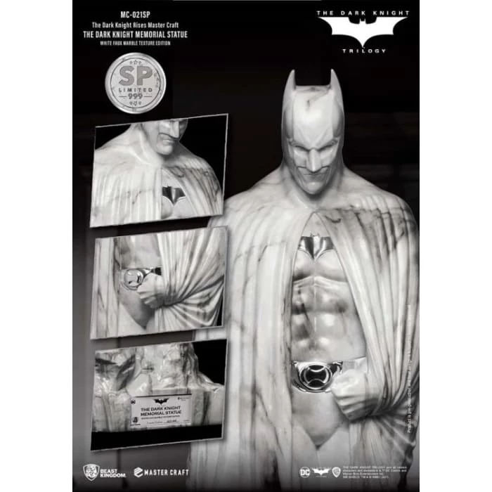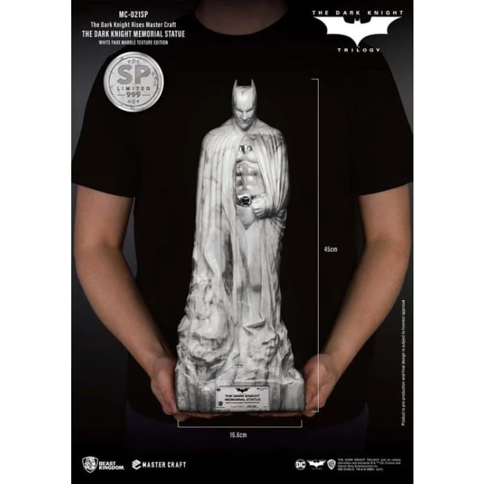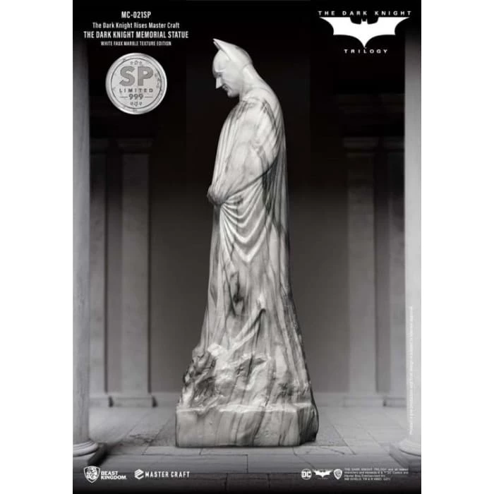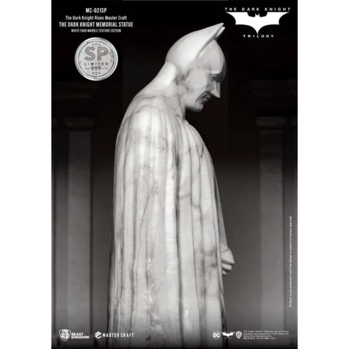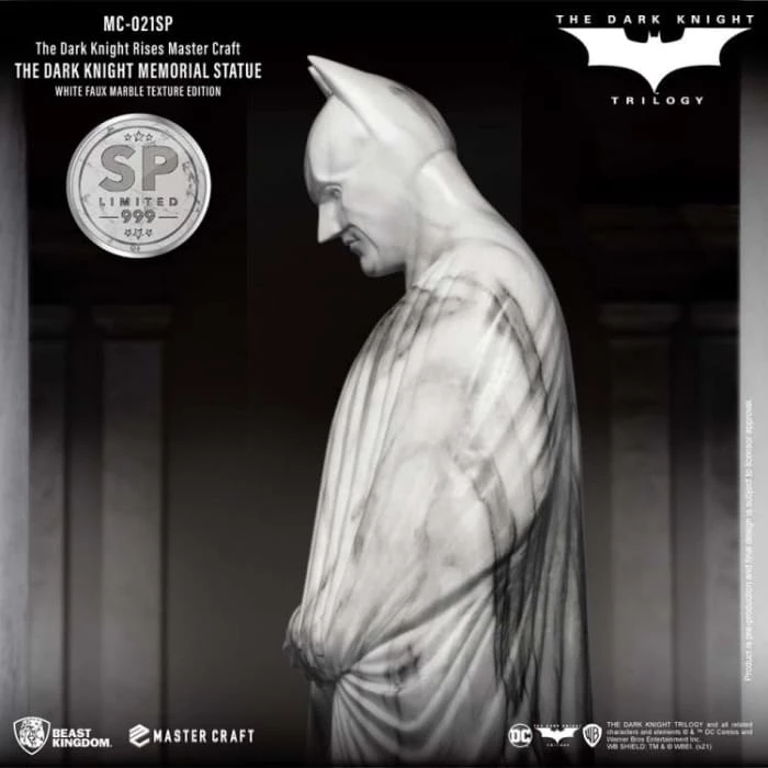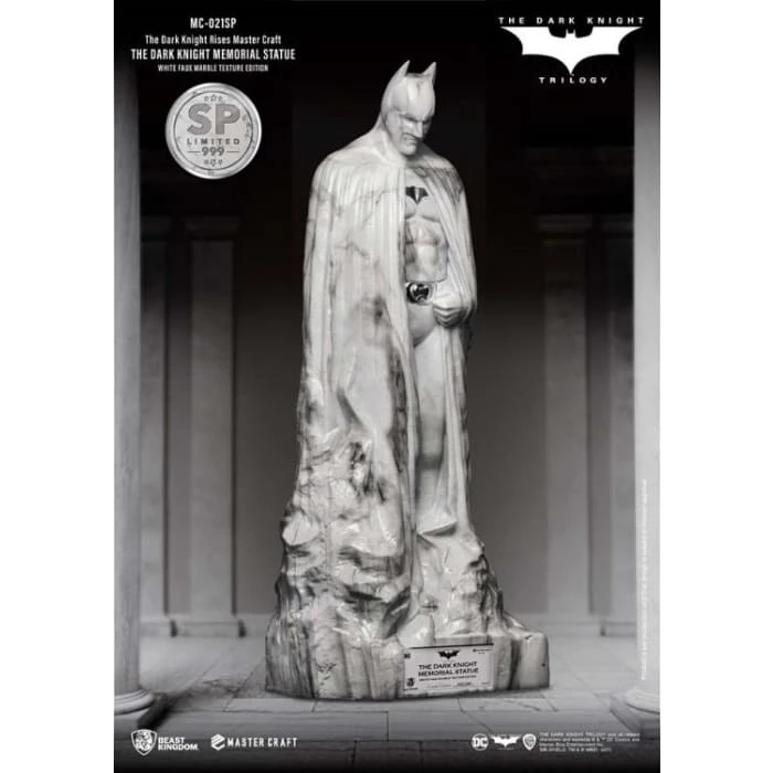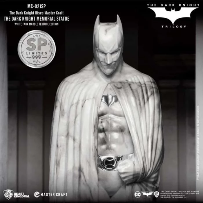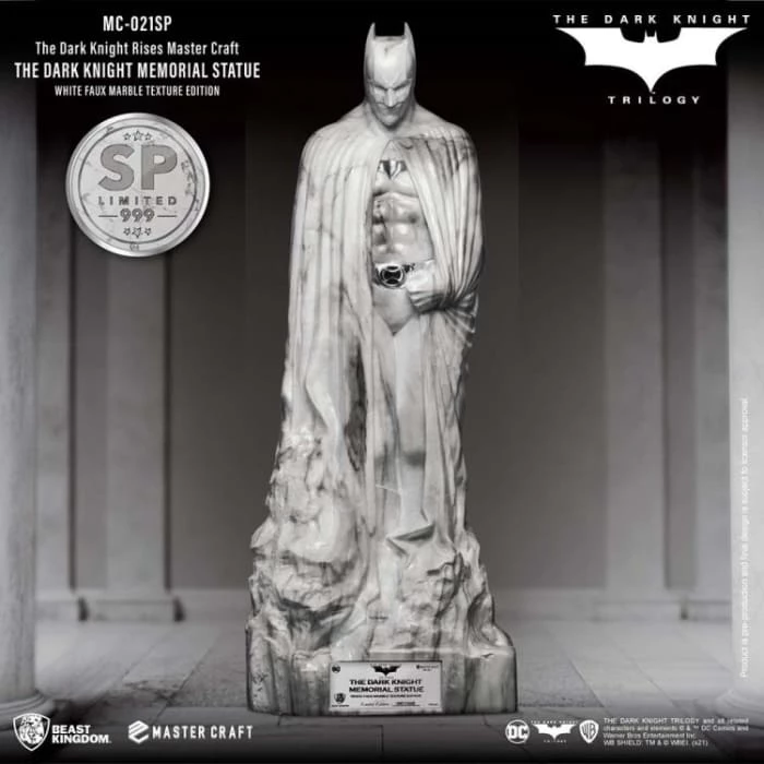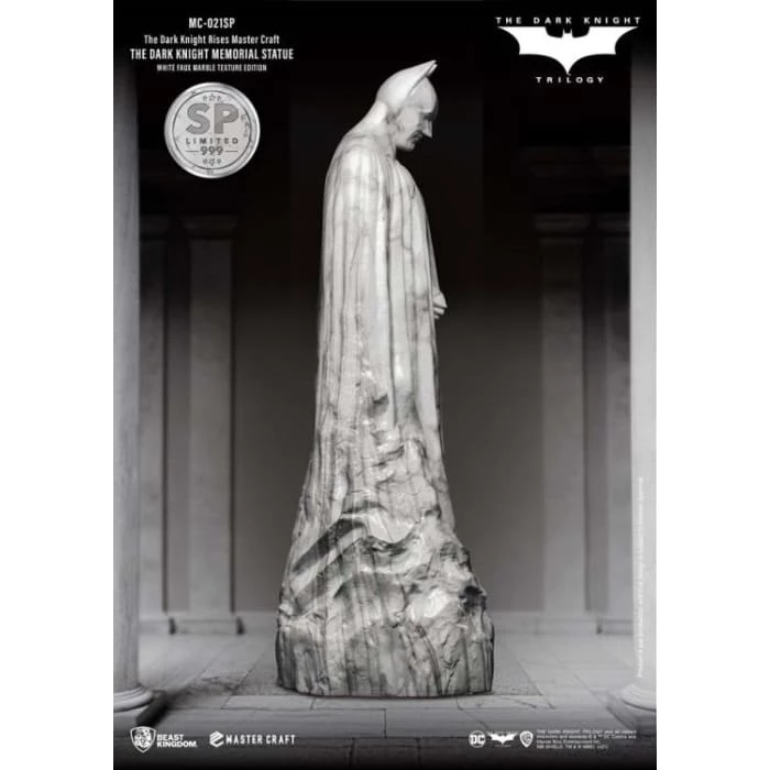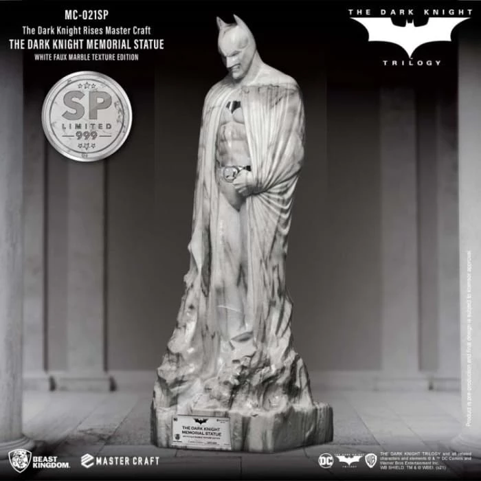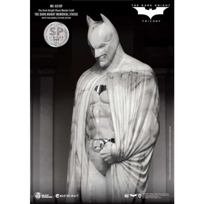 Beast Kingdom’s ‘Entertainment Experience Brand’ proudly presents the latest in high-quality statue craftmanship, the Mastercraft Dark Knight Rises: MC-021SP. The Memorial Statue series is a new recreation of the famous statues in the DC universe. The Batman memorial statue as seen at the end of the trilogy provided a fitting sendoff to arguably one of the most seminal takes on Batman. The celebration of the Dark Knight’s legacy was commissioned by Gotham City, and showcased the brooding but powerful character, as played by Christian Bale.