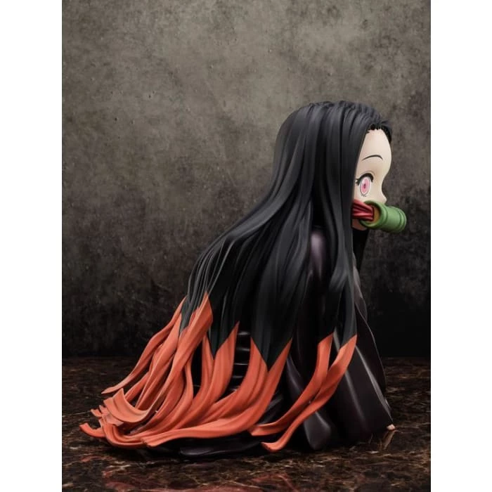 From the anime series Demon Slayer: Kimetsu no Yaiba, comes this big-sized figure of Nezuko Kamado! This figure of Nezuko can be displayed hiding in her box or sitting adorably outside. The box stands approximately 25 inches tall and is sculpted with detail and care. It even includes a hinged door!ย