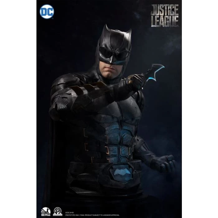 Batman, the Dark Knight of Gotham, from the Justice League film, has been frozen in time with an impressively sculpted bust by Infinity Studio. Sitting over 37 inches tall, Batman is posed with a batarang atop a Justice League base.