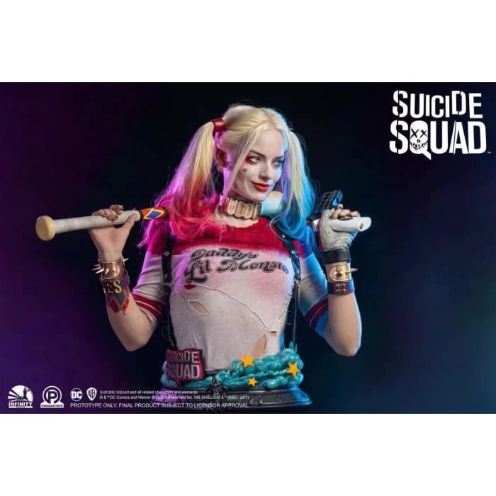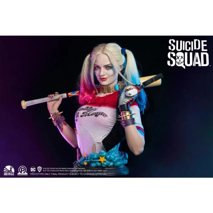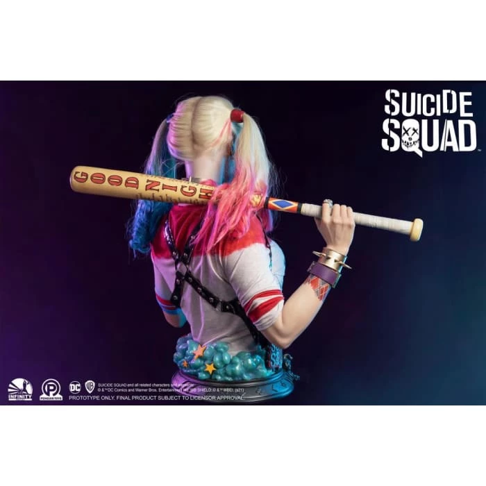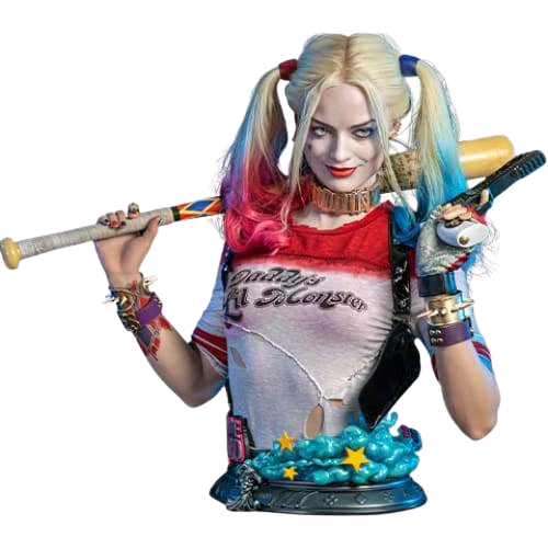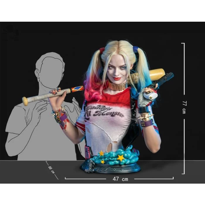 As for this bust, we adopted platinum silicone to make her skin and customized ocular prosthesis to recreate her eyes, on the skin, we never forget her tattoo and makeup. Her expression looks confident and fearless, holding a bat and a revolver in her hand, getting ready for battle.