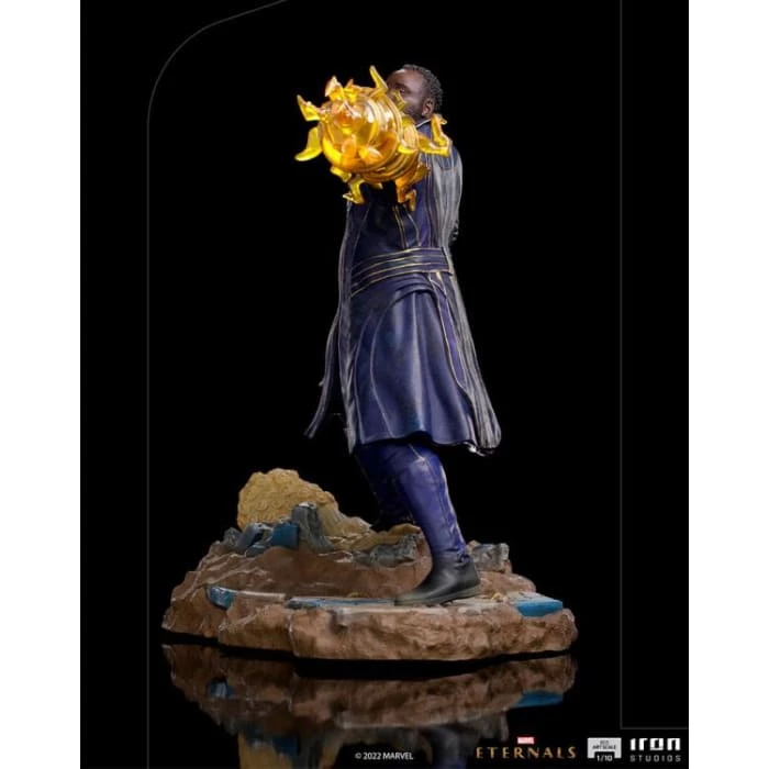 With a vortex of cosmic energy emerging from his arm, although he prefers to use his huge ingenious intellect to combat his enemies, he can also be an efficient and capable fighter when armed with his powerful rings of force. His creative mind helped him to boost humanity in technology, but he has always kept his brilliant mind hidden in the shadows as the creator of innovations such as the plow and the steam machine. Dressed in purple and silver armor to fight the Deviants, Iron Studios present the Phastos statue, with the most intelligent member of the Eternalsโ team of thinkers.