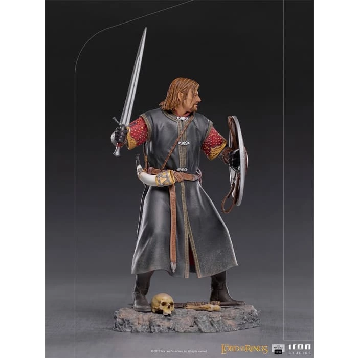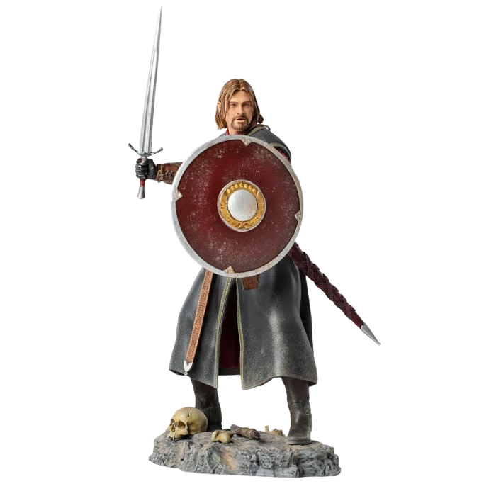 Display your own Middle-earth adventures with The Lord of the Rings Battle Diorama Series. The Boromirย statue stands 9 inches tall with his sword drawn ready for the battle.ย This highly detailed statue was created using original movie references.