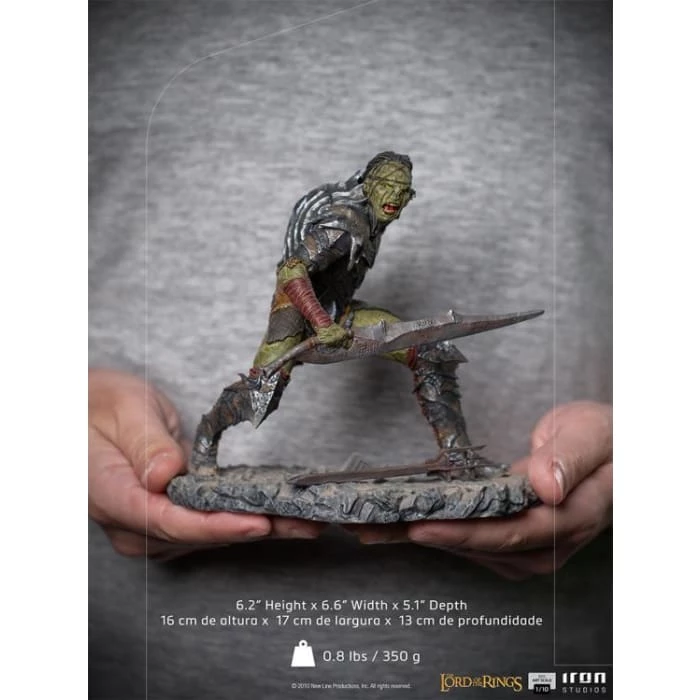 Display your own Middle-earth adventures with The Lord of the Ring Battle Diorama Series. The Swordsman Orc statue stands 6.20 inches tall with his sword drawn ready for the battle. This highly detailed statue was created using original movie references.