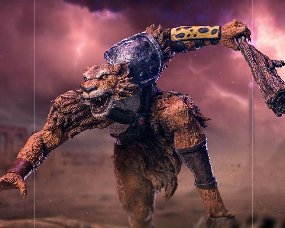 Stealthy and treacherous, with canine features, a humanoid with a body covered in brownish-orange fur wields a primitive, but no less dangerous, Wooden Club, moving between rocks on the wild planet Third Earth. He is protected solely by a metallic gladiator shoulder pad, which covers the long tufts of fur on his left shoulder. Iron Studios presents the Jackalman BDS statue of the cunning but cowardly member of the Jackalmen race from the planet Plun-Darr, and one of the mainmembers of the Mutants, a group composed of different races of animalistic humanoid barbarians, who are among the enemies of the ThunderCats.