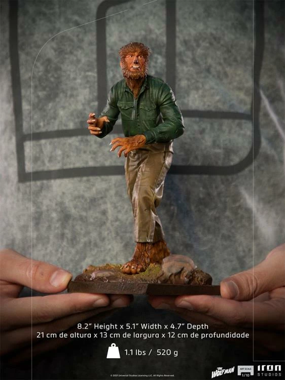From the iconic Universal Monsters movie, The Wolf Man, comes a 1/10 Art Scale limited edition statue of The Wolf Man himself. The statue stands over 8 inches tall and features The Wolf Man on the prowl.