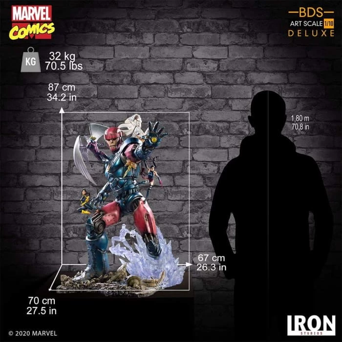 Iron Studios is proud to present another X-Men Vs. Sentinel 1:10 Deluxe Battle Diorama Series statue. This statue is based on 1990s X-Men and is specially hand-painted. The diorama base allows you to connect the statue with other characters to create a battle scene. This Sentinelย is battling against Storm, Archangel, Psylocke, Iceman, andย Shadowcat.ย