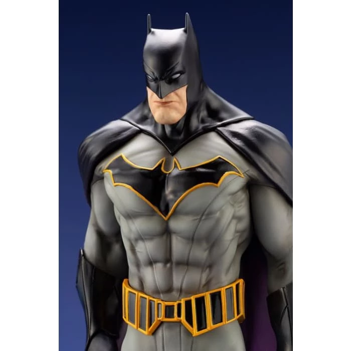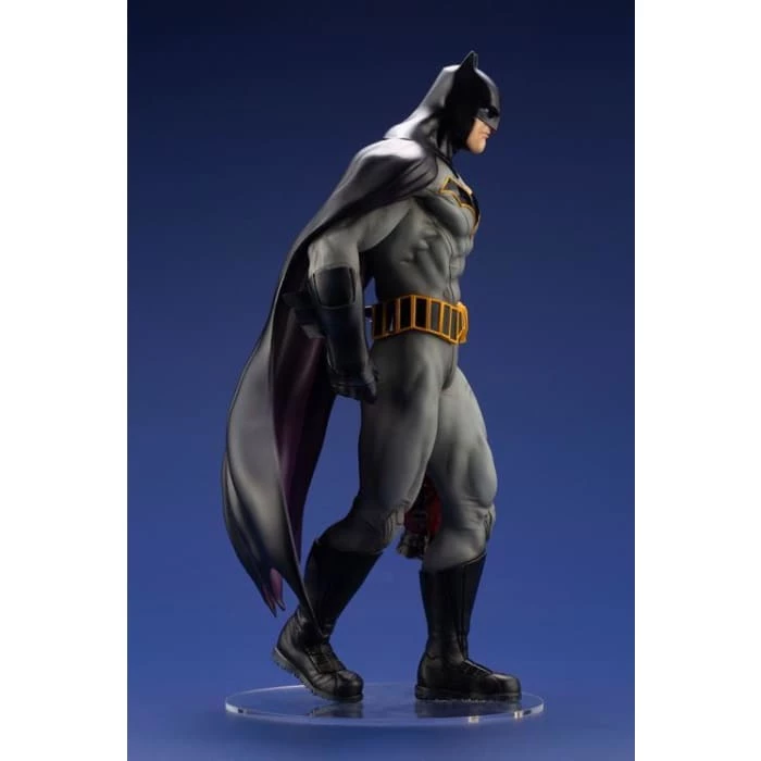 The included pedestal has a metal plate with the Batman chest logo on it, allowing it to be displayed immediately out of the box.