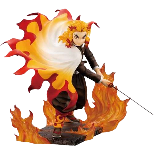 From the anime Demon Slayer: Kimetsu no Yaiba, this is a highly detailed statue of the flame pillar Rengoku Kyuojurou with a powerful sword swung down. The base features translucent flame effects to add to the detail and powerful stance of this statue.