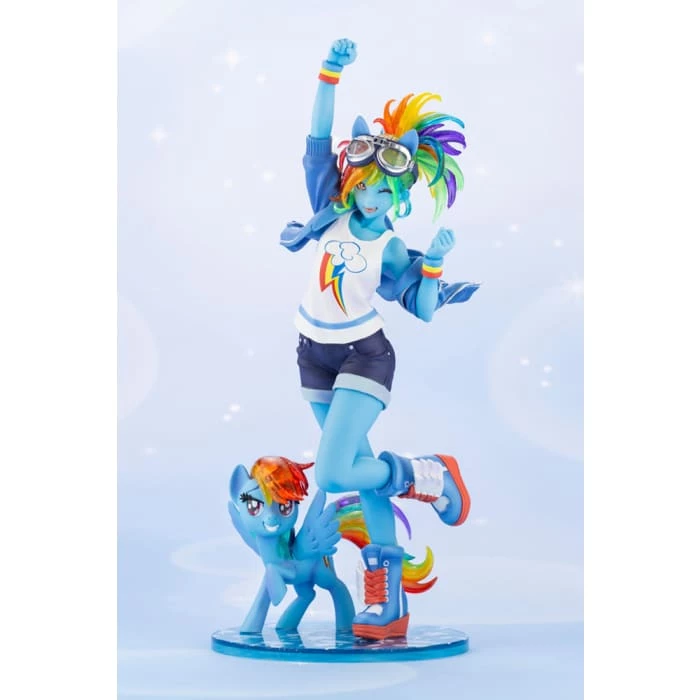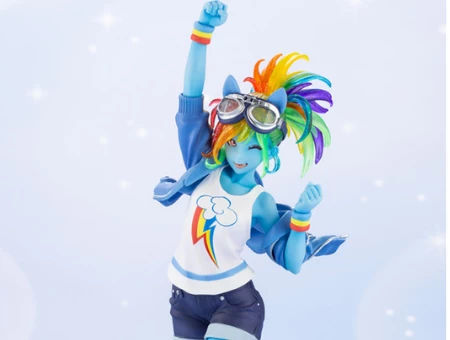 The Officially Licensed MY LITTLE PONY BISHOUJO series is now back in an all-new limited edition color variant! Next in the lineup is Rainbow Dash! Rainbow Dash’s hair and base is now made of clear plastic material full of glitter all over! Her sparkling presence comes across even more clearly! The candy-like look and texture of this figure make it seem like she might be giving off a sweet scent. Fans will not be able to keep their eyes off this statue! The skin tone now matches her appearance in “My Little Pony: Equestrian Girls”! The packaging for this figure has also been upgraded with a hologram design to add a completely different finish from the regular Rainbow Dash BISHOUJO for fans to enjoy. Be sure to add these special ponies to your collection!