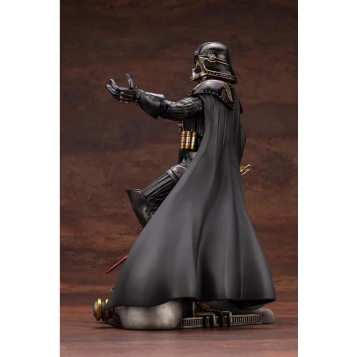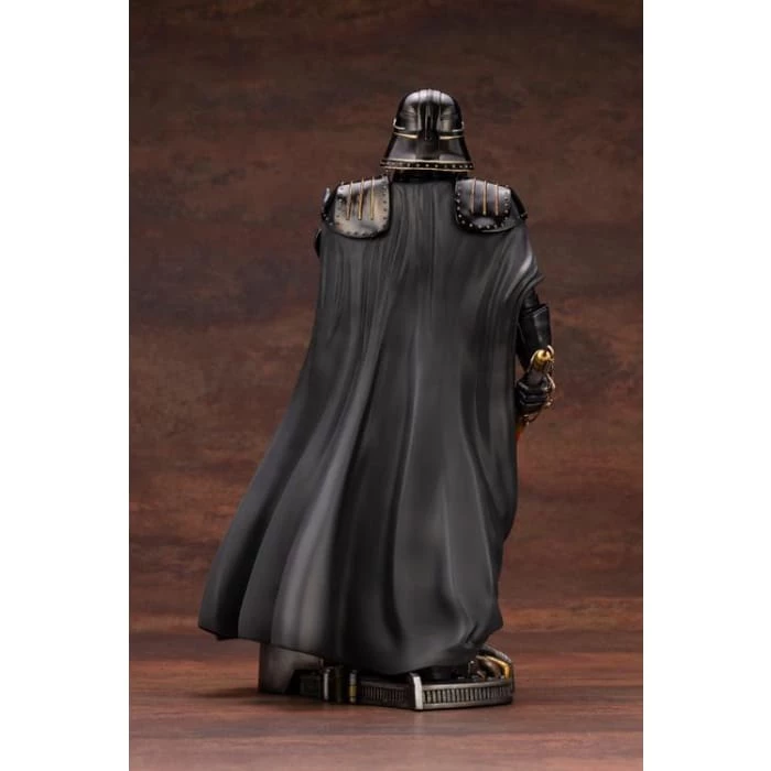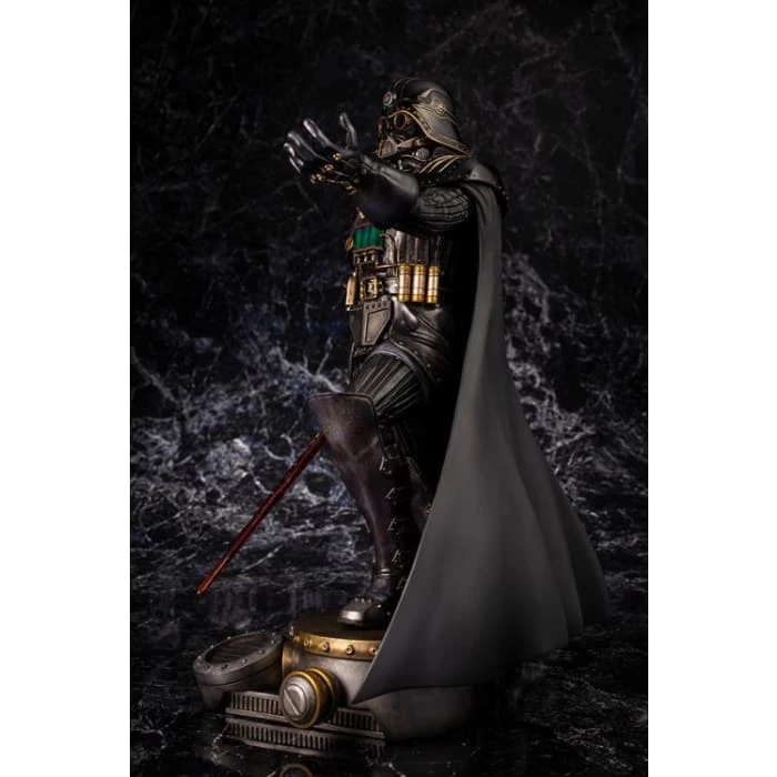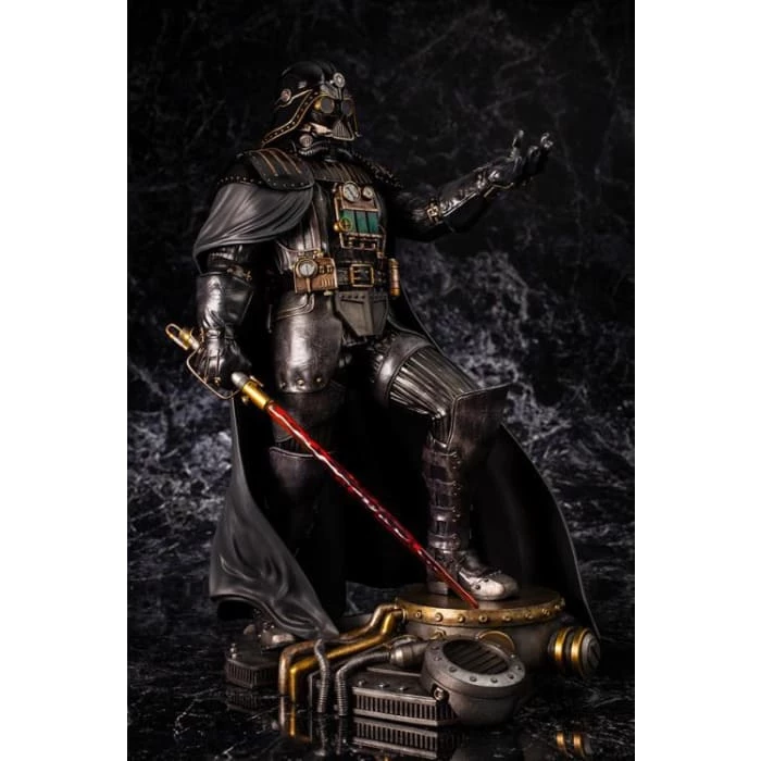 Standing triumphantly, Darth Vader takes on a uniquely steampunk appearance in the work entitled โIndustrial Empireโ. World-renowned artist Adi Granov created this exclusive illustration in collaboration with Lucasfilm just for Kotobukiya! Reimagined in this iconic style, the Dark Lord of the Sith appears in a forbidding pose, arm outstretched and incased in a battle-worn suit embellished with metal plating, rivets and various pressure gauges.