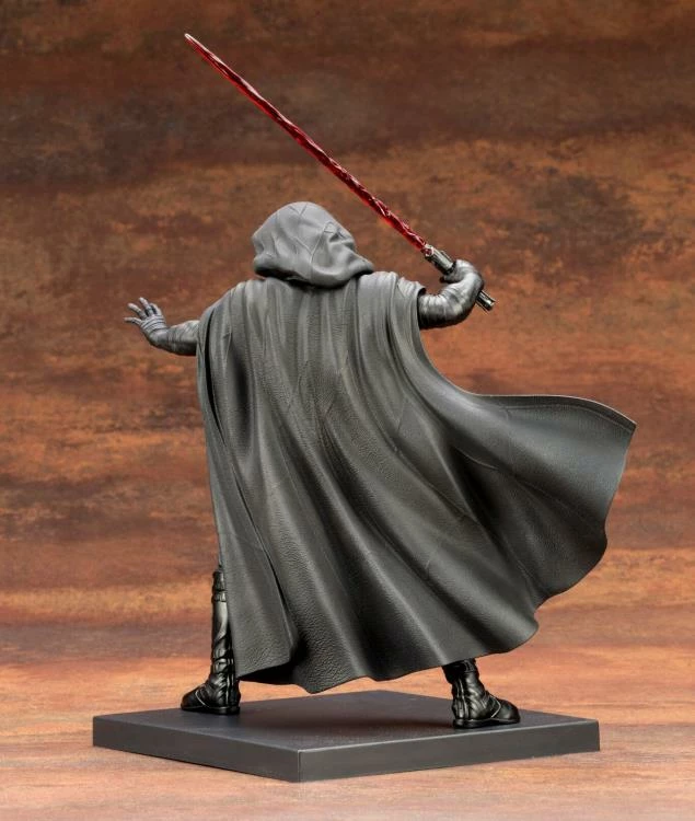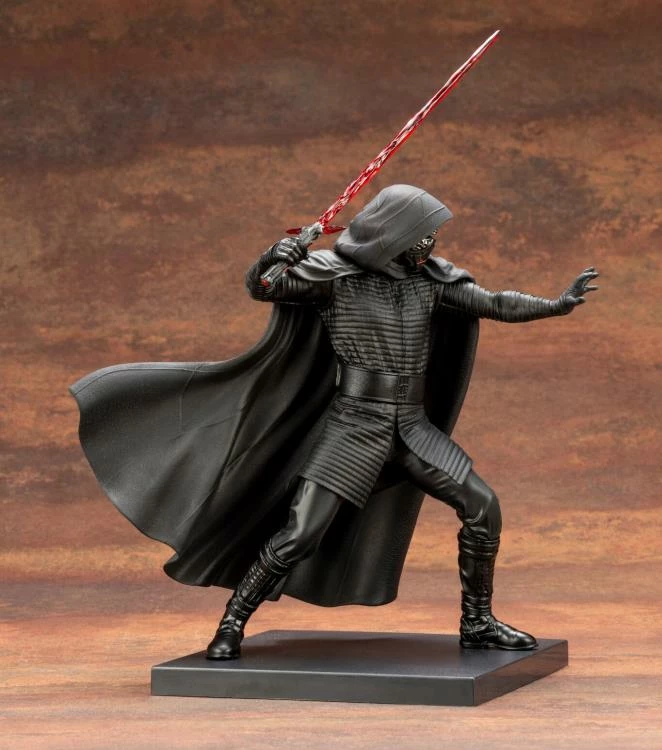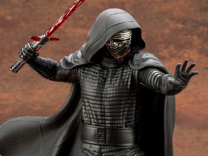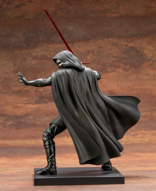 From Star Wars: The Rise of Skywalker, the ArtFX+ Kylo statue stands with lightsaber in hand ready to use a force attack on his enemies. Standing about 7 inches tall, Kylo featuring a highly detailed design and features magnets in his feet to attach him securely to the base.