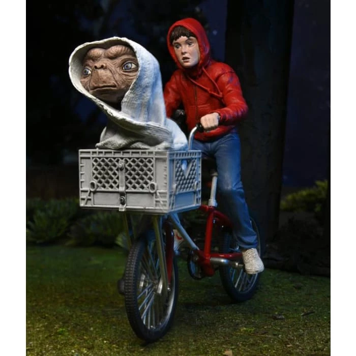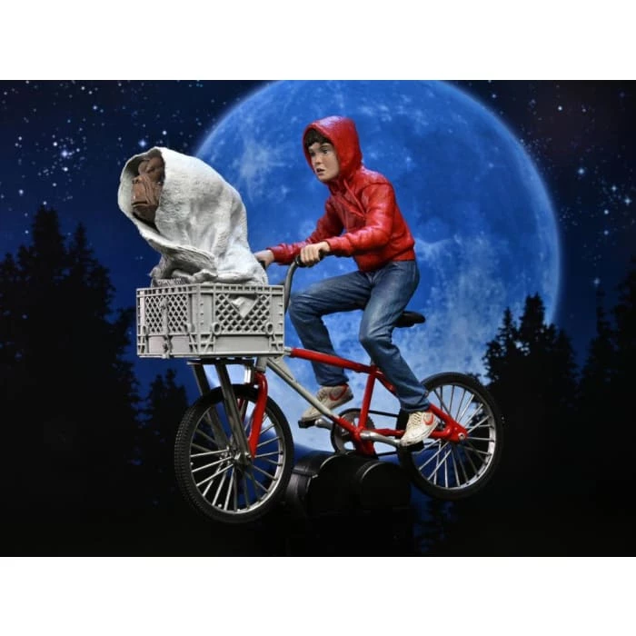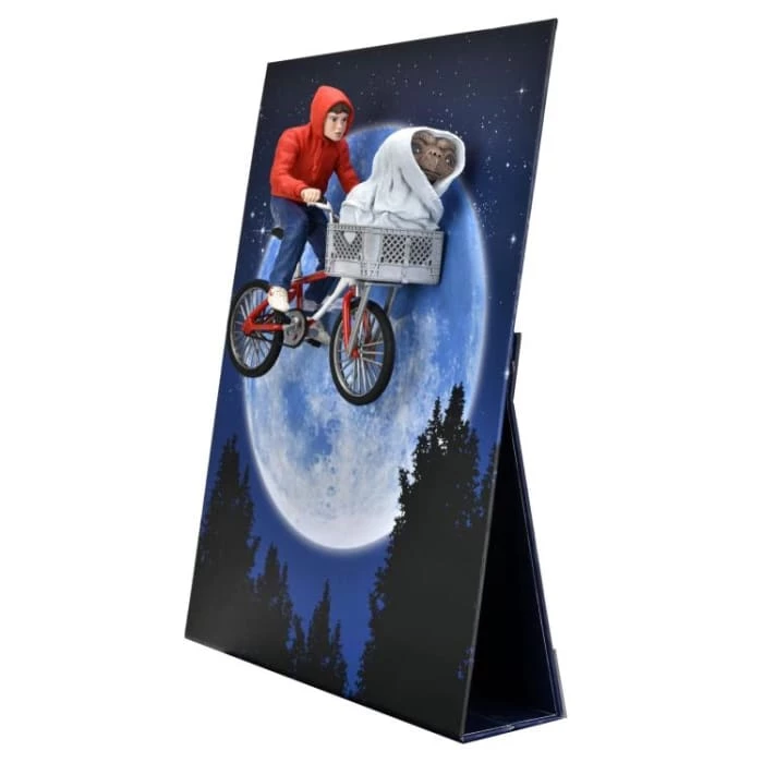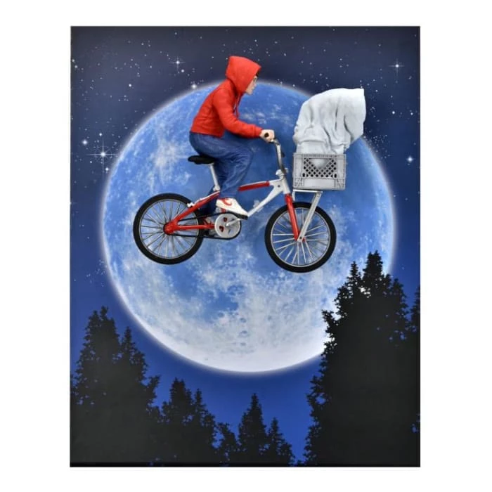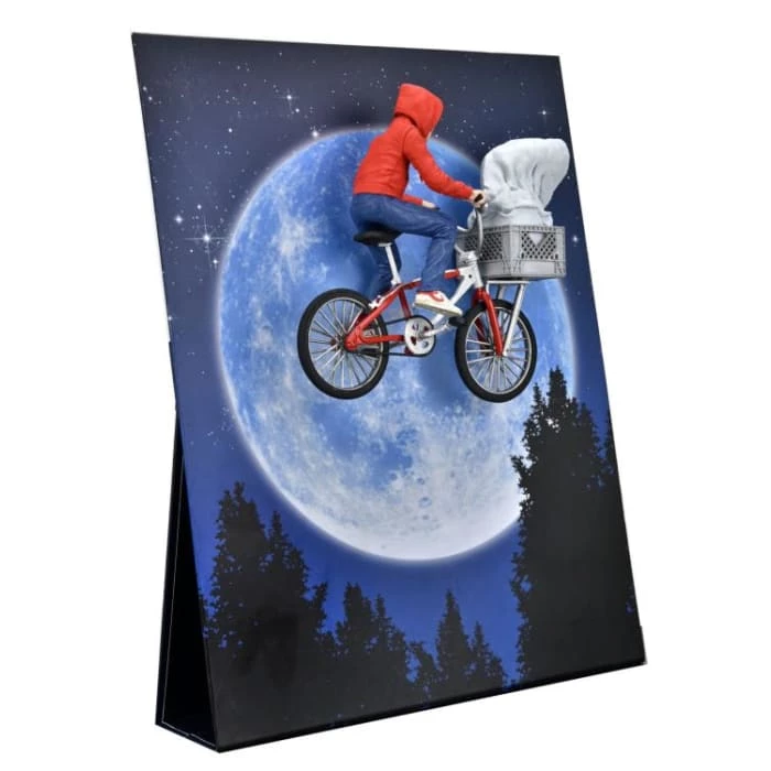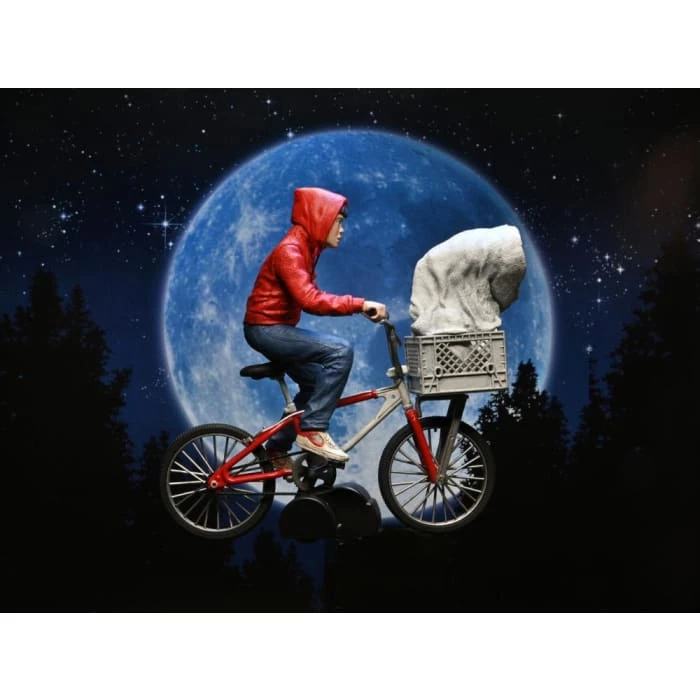As your friendship with E.T. grows, relive all of his earthly encounters or look to the stars and create your own unforgettable interactive adventures. E.T. and Elliott on Bicycle feature pull-back-and-go action! And to re-create the famous flying scene, you can attach the figure to a freestanding movie backdrop for an iconic image.
