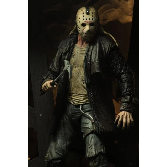 It features two interchangeable heads (one has a removable mask) and the all-new, extra-articulated Ultimate body, plus loads of accessories: machete, axe, fire poker, hammer and screwdriver. Comes in display-friendly window box packaging with opening flap.