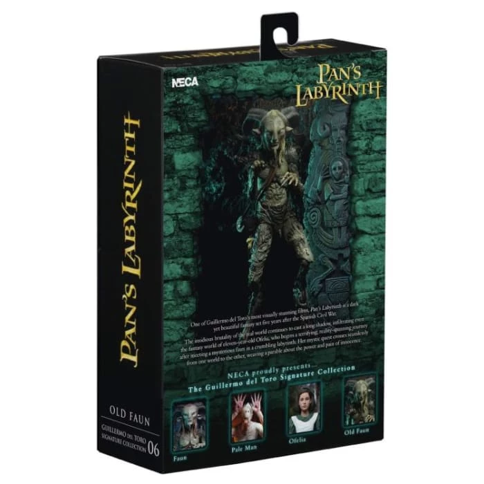 For the 6th release from NECA’s collaboration with renowned movie director Guillermo Del Toro comes The Old Faun! From the dark fantasy film, Pan’s Labyrinth, the Faun comes with a new head sculpt and paint deco to portray his aged appearance in the film.ย Standing over 9 inches tall, the Faun is super poseable and comes with detailed satchels and a bone flute. Deluxe window boxed packaging with brand new artwork.