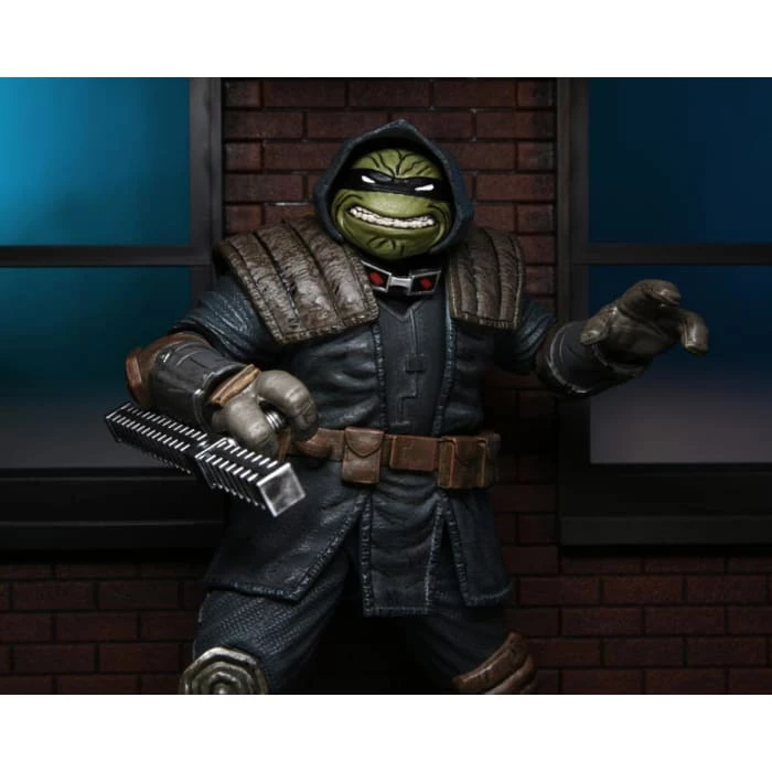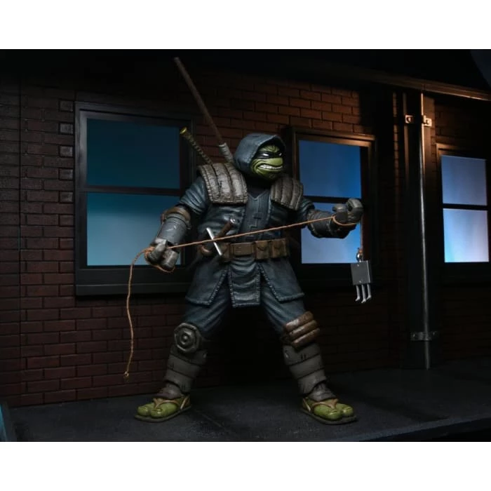 This armored version of The Last Ronin action figure is authentic to the comic book depiction and stands in 7″ scale. Includes goggles, grappling hook, tonfa, smoke bomb, sai, katana, bo staff, nunchucks, and interchangeable head and hands.