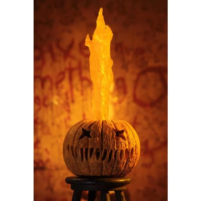 The deluxe release features an all-new highly articulated body and accessories galore, including 4 interchangeable heads, 2 Jack O Lanterns (one lights up!), interchangeable hand, severed hand, trick or treat sack, lollipop, and candy bar knife.