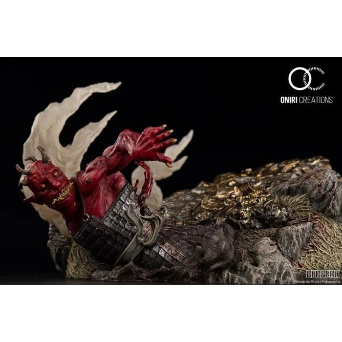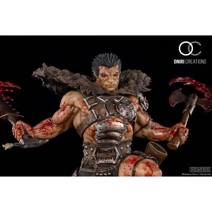 From Oniri Creations, based on the popular manga Berserk, this limited edition statue features Zodd the Immortal in human form wearing a suit of armor never before produced in statue form. This fourth statue in the Berserk line features Zodd letting his power speak for itself while facing off with the Kushan troop of soldiers, the Daka.ย