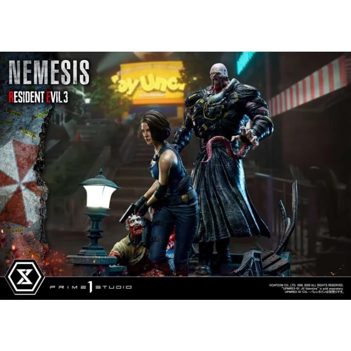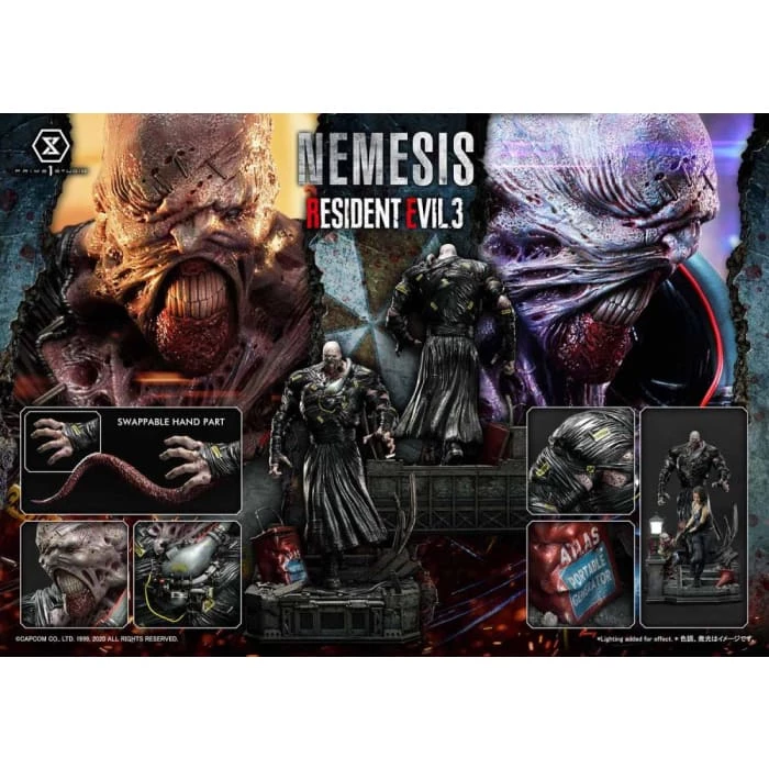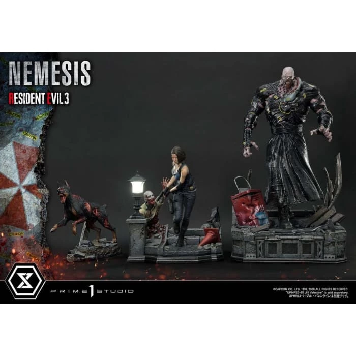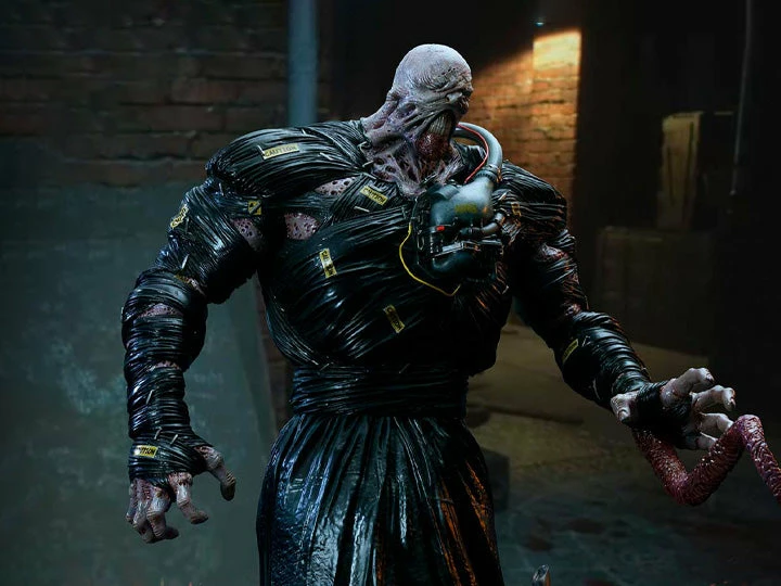 On his cinematic base, Nemesis reaches out for his next victim, as he is surrounded by the detritus of a Raccoon City on the verge of destruction!