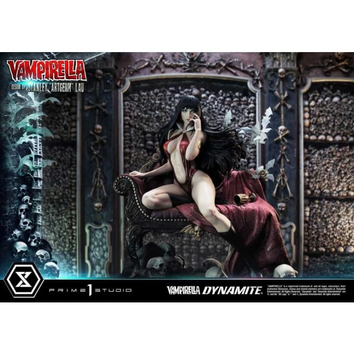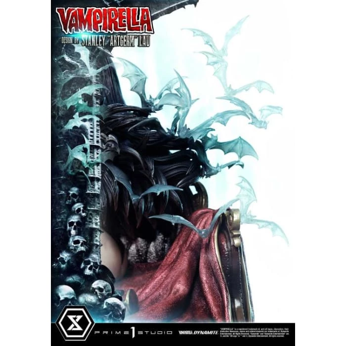 Hot from the pages of Dynamiteβs thrilling monthly comic, VAMPIRELLA comes to you from the fantastic mind of Stanley Lau and the impressive artistry of Prime 1 Studio! Based on Vampirella No. 6βs famous Artgerm cover, Prime 1 Studioβs 22-inch tall Vampirella statue carries on with the theme of Vampi unwinding by herself on a finely appointed chaise lounge base, adorned with the familiars and accessories of her world.
