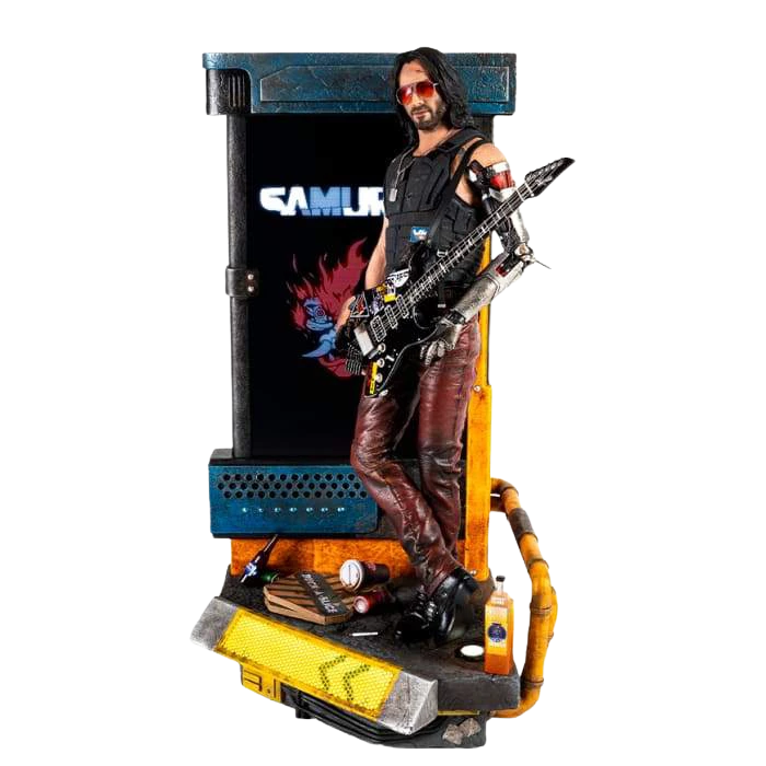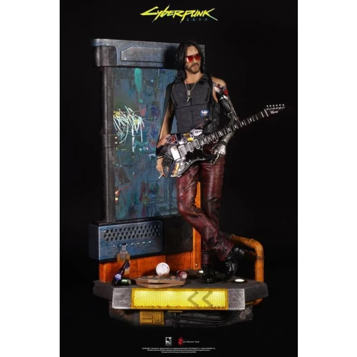 From 2020’s most wanted video game Cyberpunkย 2077 and played by the highly charismatic Keanu Reeves, this Johnny Silverhand 1/4thย scale polystone statue will blast fans all around the world with the finesse of its details.ย For the first time, a statue will include a 13.3 inch LCD screen with preprogrammed exclusive digital content managed by a remote control and a duel speaker system.