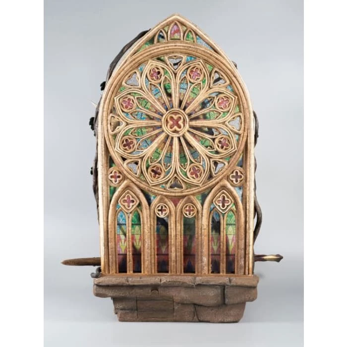 Enjoy the beautifully detailed sculpt of the stained-glass arch made of plexiglass on a massive base including LED effects in a large 1:4 scale format!