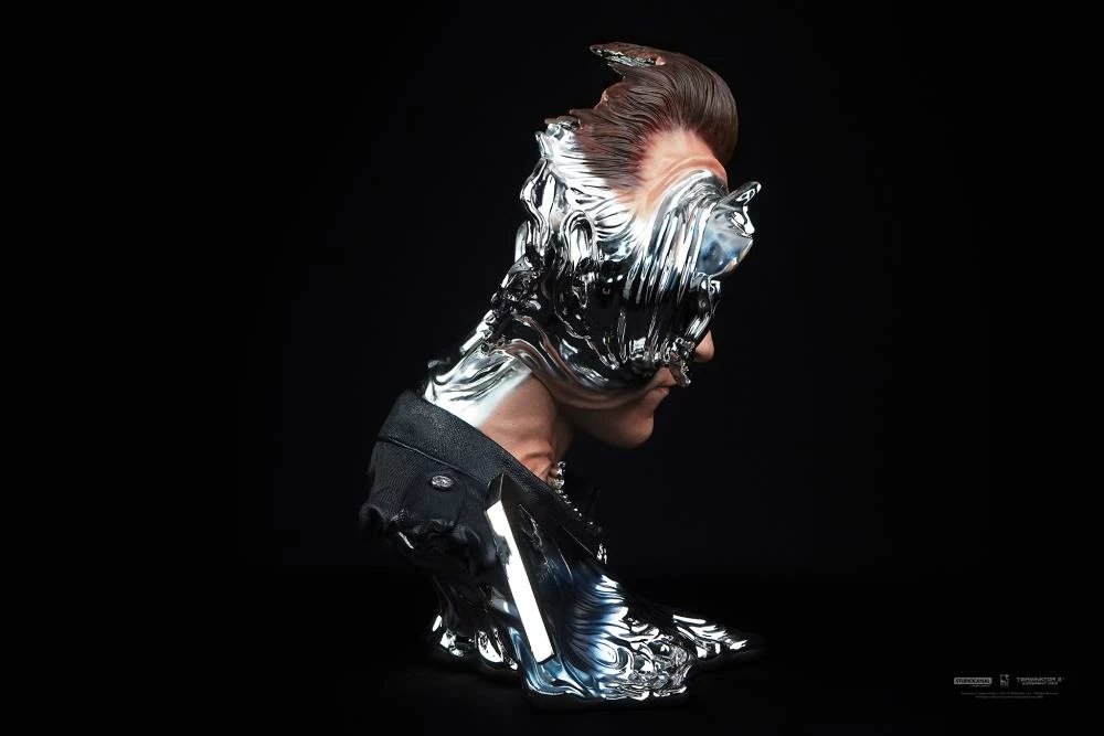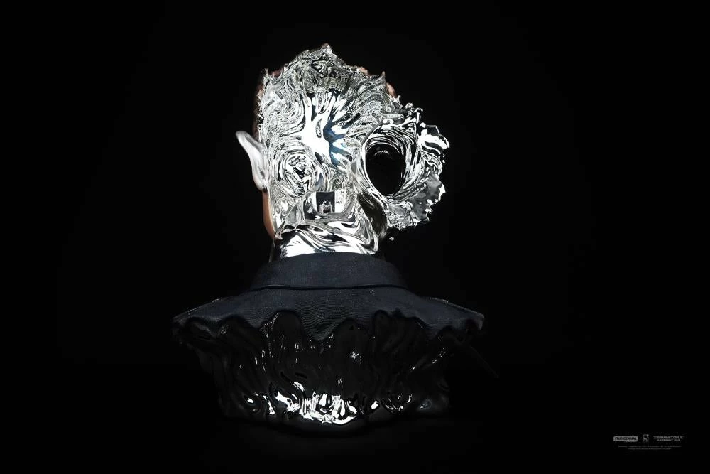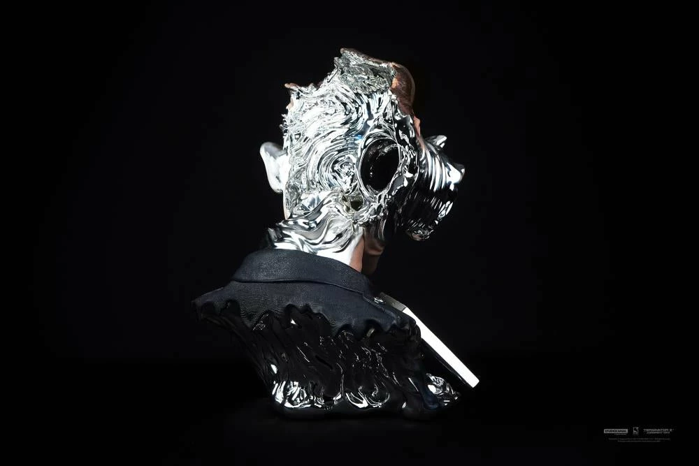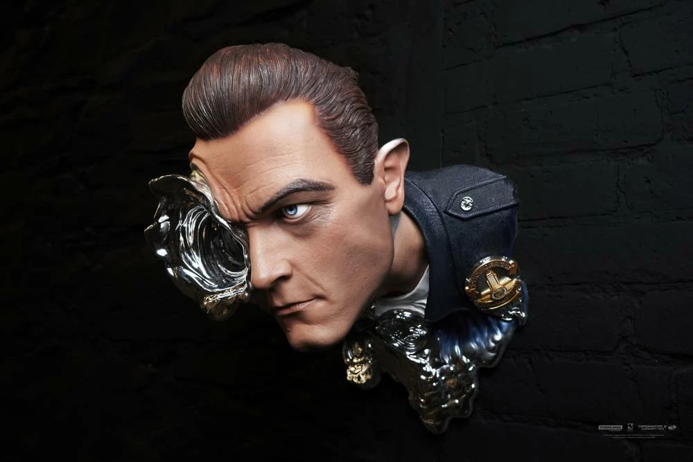 Featuring a liquid molecular brain, the ability to shape-change and mimic objects and beings of similar size, Skynet’s T-1000 is the ultimate killing machine. This highly detailed Art Mask shows the silent killer portrayed by famous actor Robert Patrick in his police uniform at the key moment when bullets and a shotgun blast reveal the horrifying reality of this unstoppable machine.