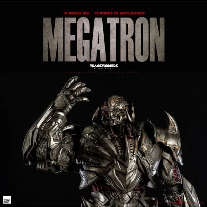 Hasbro and Threezero proudly present the PREMIUM Megatron (Deluxe Edition) Collectible Figure from Transformers: The Last Knight! Megatron has been meticulously adapted and engineered as a highly articulated collectible figure using the film model as a basis. The PREMIUM Megatron (Deluxe Edition) Figure features LED illuminated details, a variety of accessories, and incredibly detailed weathered paintwork.
