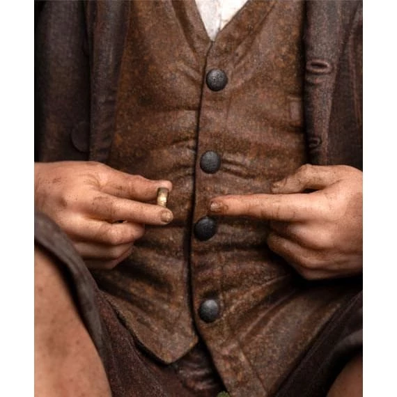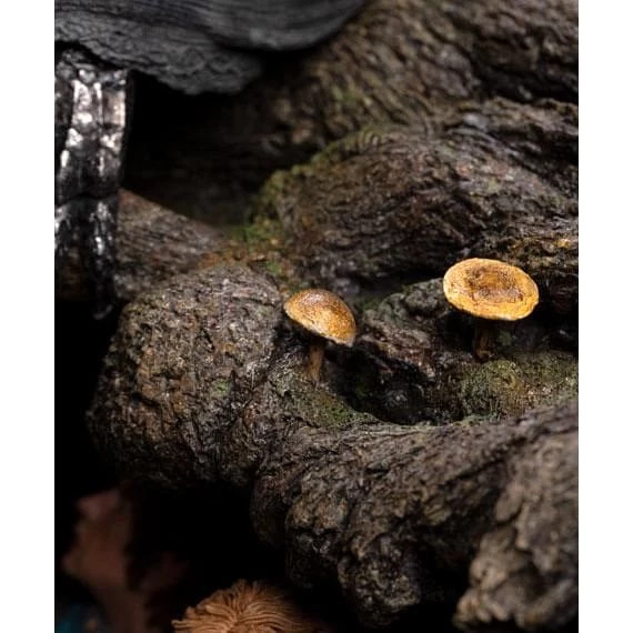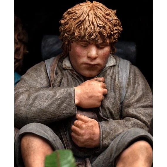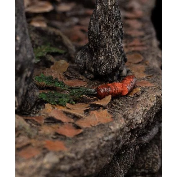 This scene was filmed not far from Weta Workshop, atop the hills of Mt. Victoria in Wellington, New Zealand, and although the original artificial tree has long since gone, the sense of depth in the surrounding wilderness remains. Along with references to original props, costumes and designs, this unique access to the location itself allowed these two artists to recreate every minute detail of this moment. From the flora and fauna of the environment to the colours and textures of the costumes; even the micro expressions of the characters. Every single leaf, every single hair and branch, placed with the utmost care and precision.