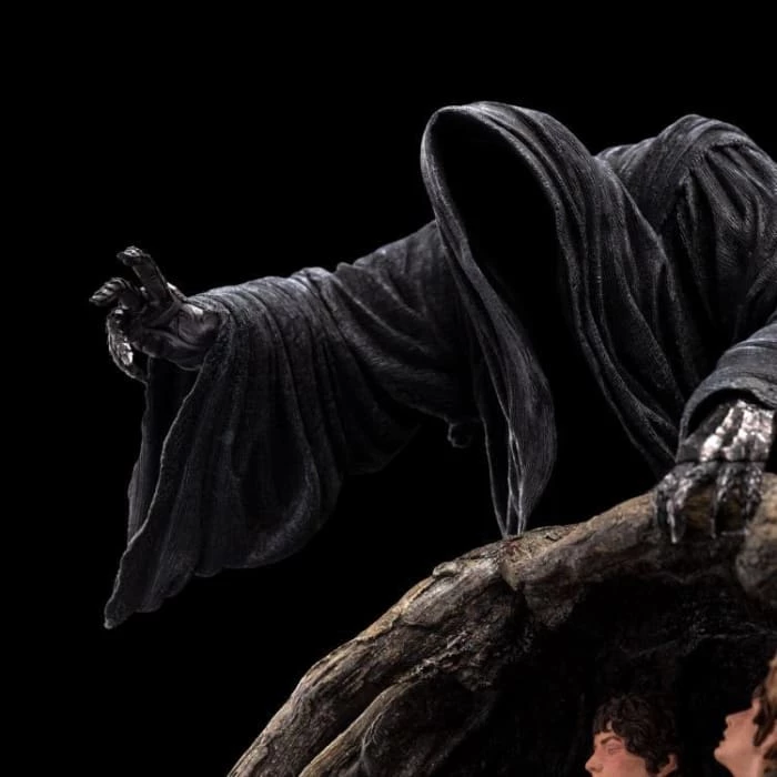Dropping to its knees, steel-gauntleted hands groping, the faceless wraith looms over them. Around the Hobbitsโ hairy feet, the ground writhes with worms and other small creatures seeking to escape its terrifying presence. As the figure closes in upon them and its shadow threatens to swallow all hope of escape, Frodo falls into a trance, the Ring around his neck calling to him, his finger edging ever closer to the promised safety of the magical golden bandโฆ
