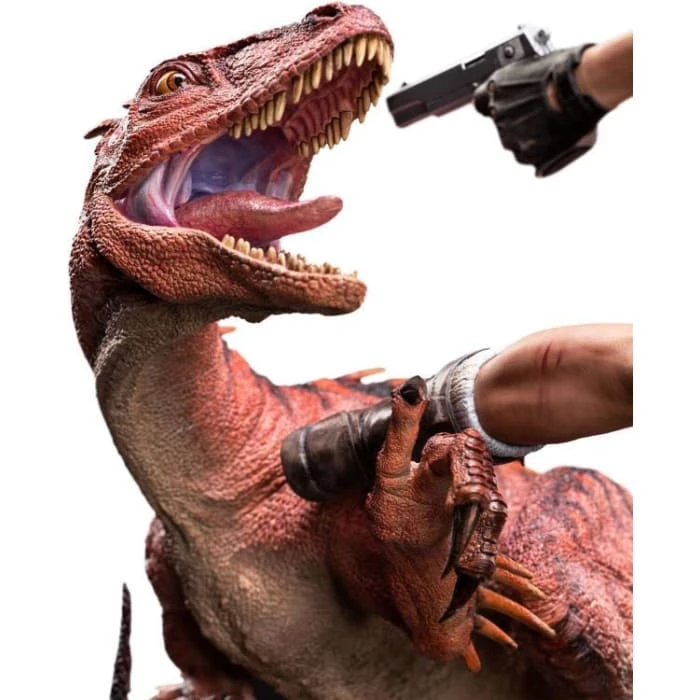 In the original 2007 anniversary game, Lara Croft is represented as a simplified version of the heroine we know her as today. Weta Workshop 3D artist, Gary Hunt, was charged with re-interpreting the original 3D game model from Crystal Dynamics – adding realism and expression through detailed design. Paying homage to the 25th anniversary of Lara Croft, she is depicted here in a dynamic pose, which captures the physical and emotional tension of her iconic fight against dinosaurs in The Lost Valley.