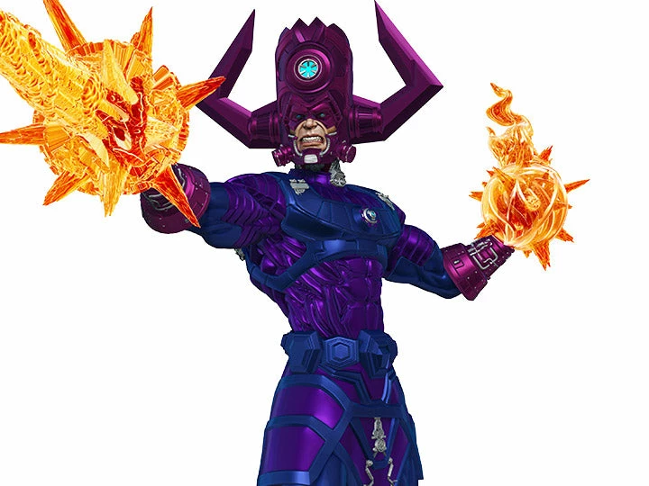 The Devourer of Worlds draws near! As Galactus’ hunger grows, his next target is revealed: the HeroClix tabletop! This Premium Colossal Figure has been specially sculpted with detail pushed beyond anything ever seen in HeroClix.ย At more than a foot tall, Galactus comes alive to tower over the tabletop and includes an alternate helmetless head to display.