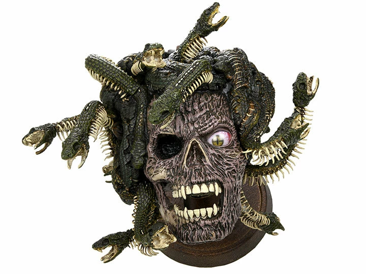 The Medusa Trophy is made of foam rubber and latex that’s carefully hand-painted for realistic detail. The trophy plaque comes with everything you need to mount the plaque to your wall.