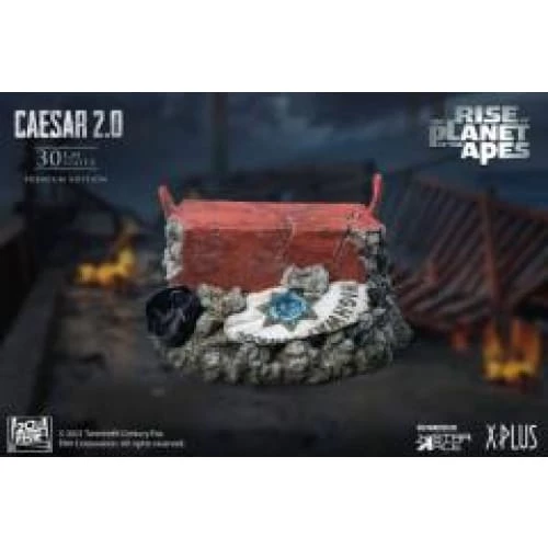 Rise of the Planet of the Apes sees the genetically modified baby chimpanzee, Caesar, grow to become the leader of the ape uprising to overthrow their human oppressors. This 30 cm polyresin statue of Caesar features him leading the ape army on the Golden Gate Bridge. This Deluxe version of the statue includes a diorama base with debris from the battle incorporated into the design.