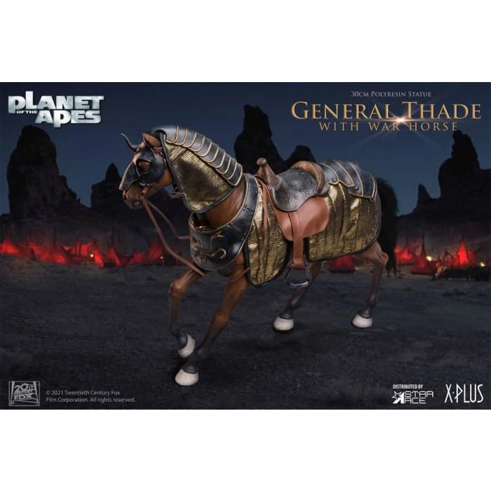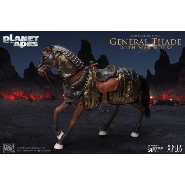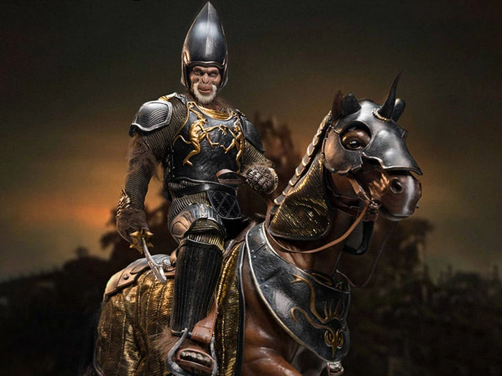 The evil soldier ape can stand on his own or sit astride his fully equipped war horse with removable saddle and bridle.