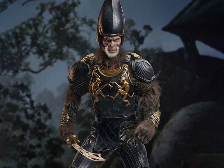 This polyresin statue of Thade has a fabric costume and fur accents under his armor with a faux fur beard. It is articulated at the shoulders and neck for limited posability and stands 30cm tall. It features a detailed, authentic likeness to Thade in the film and is meticulously hand-painted.