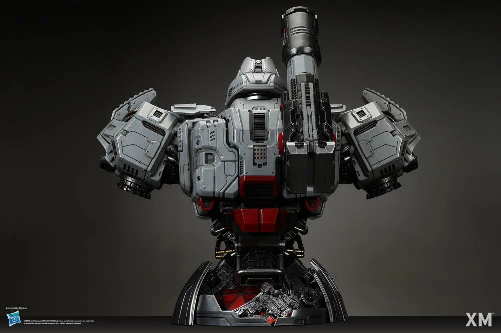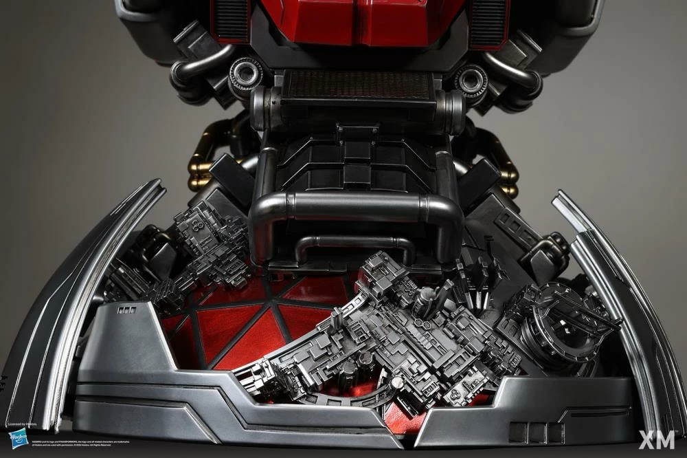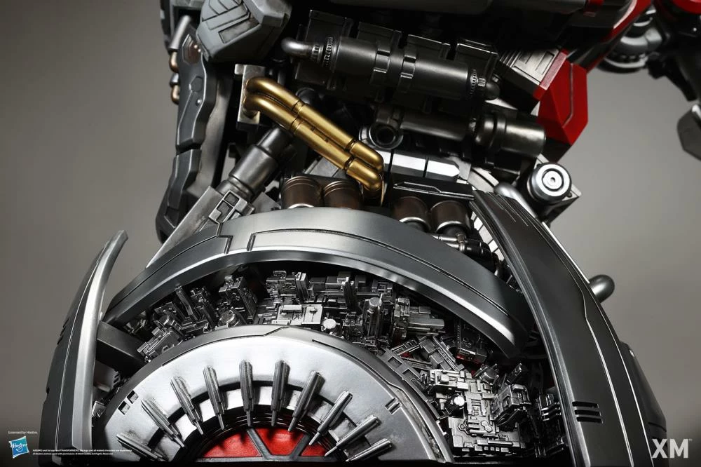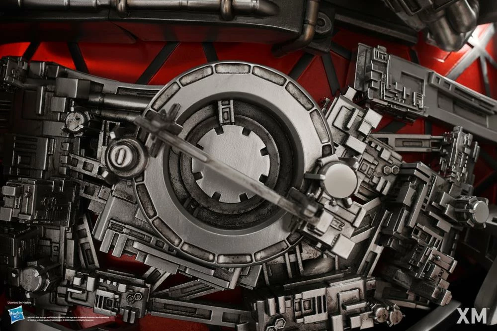 Moving upwards from the base, collectors will notice a metallic sheen on the surface of Megatron, with his imposing presence almost lending itself to you. On his back is the iconic barrel of the pistol that he transforms into. As you move across his torso and into his shoulders, collectors will be able to immerse themselves in the level of detail the XM Team has put into the surfaces and textures all across the statue in hopes of creating a bust thatโs worthy for all transformers fans.